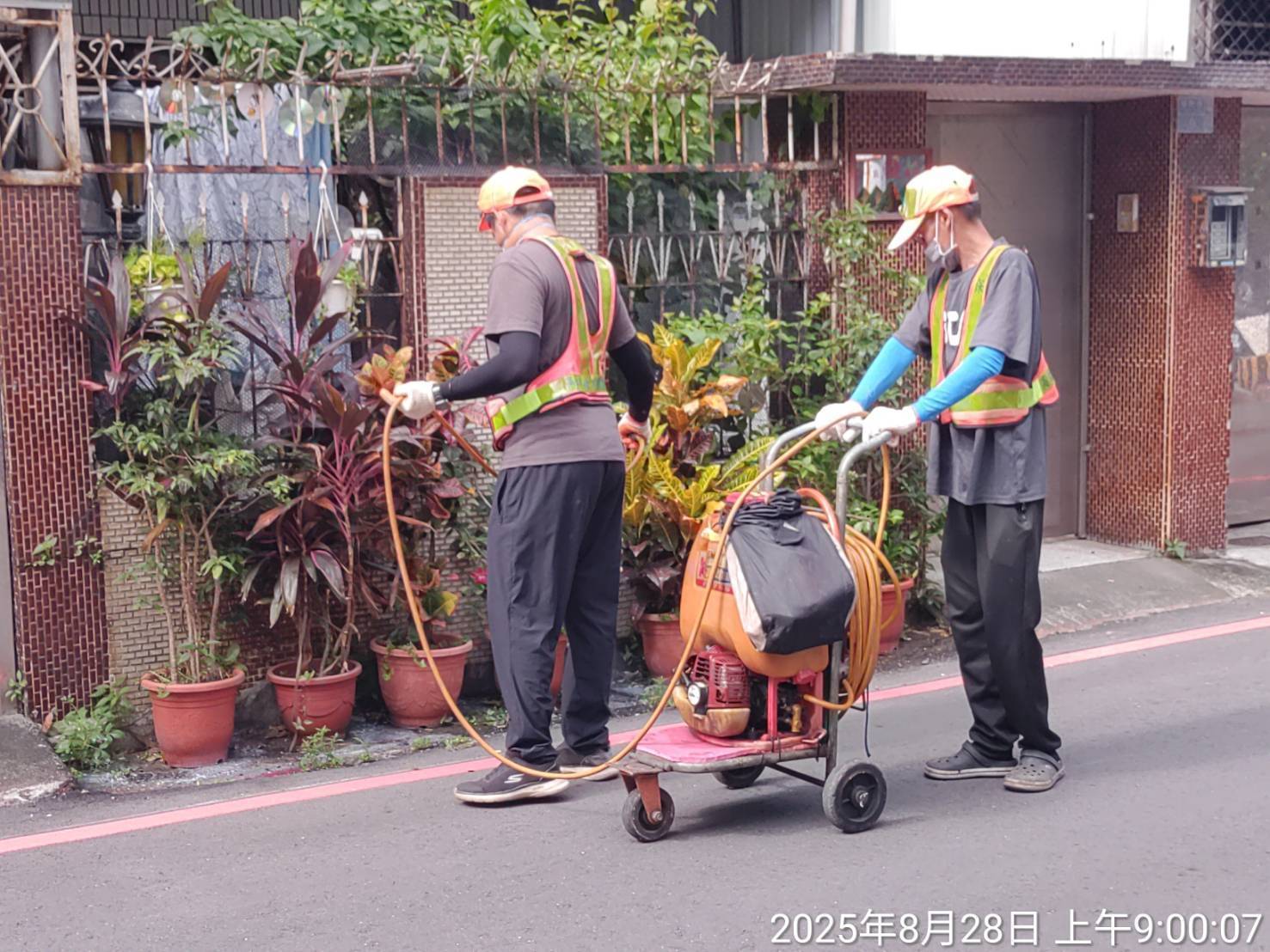 圖說-跨局處防疫團隊持續於警戒範圍內徹底清除髒亂點、孳生源檢查等防疫工作。