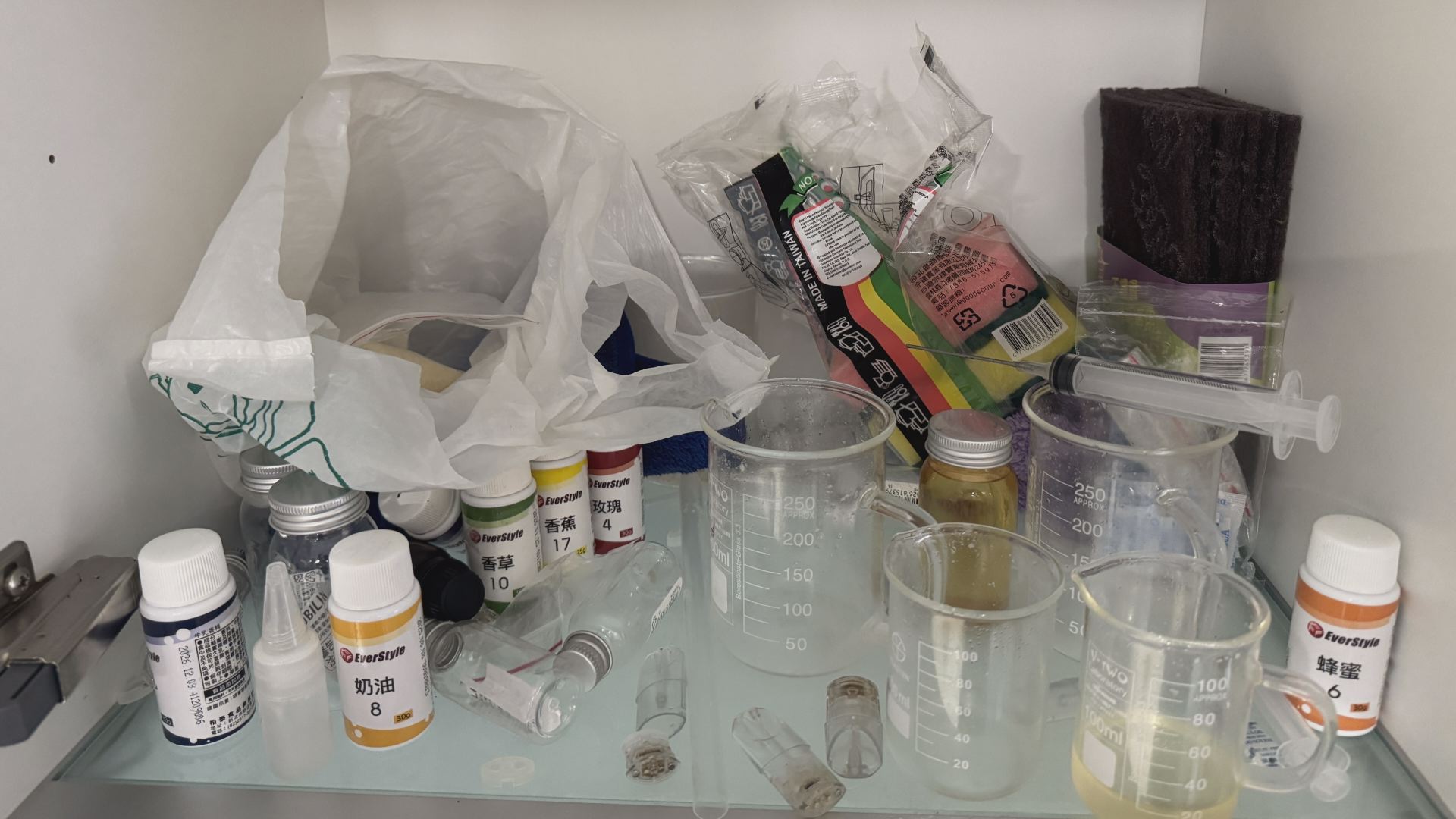 在小金庫內,警方查獲了大量毒品,包括卡西酮、愷他命與依托咪酯原油,以及多種口味的果汁調和油。這些調和油被用來調製成奶油、草莓、芋頭、蜂蜜等各種香氣,企圖以誘人的外表掩蓋毒品本質,製成毒品煙彈販售。警方也查扣了多組電子煙、電子磅秤、玻璃量杯等製毒工具,證物數量之多令人咋舌。毒販落網後表示,因長期沉迷毒品導致與家人關係疏離,本以為能成為人生勝利組,卻因毒品而走上不歸路,最終面對冰冷的牢房。
