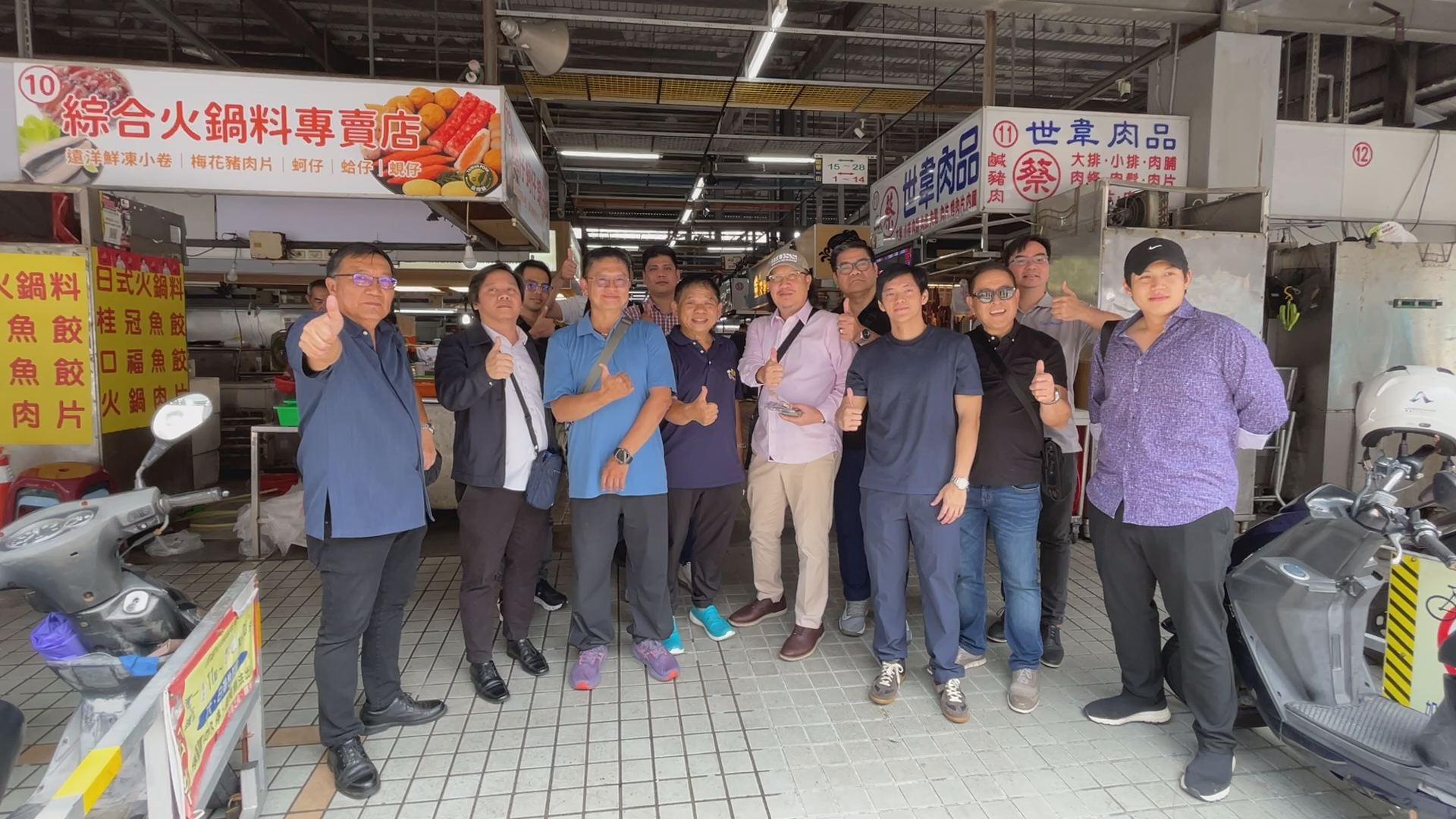 菲律賓代表團成員與龍華市場自治會長李國祥(圖中深色衣)合影,感受市場的熱情與友善氛圍。(圖:記者李佳龍/攝)