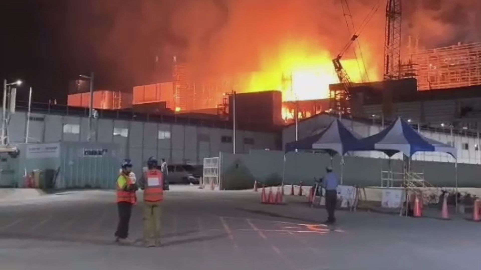 火警發生後,高雄市長陳其邁與副市長林欽榮接趕赴現場,要求新1號及新2號燃氣機組暫停試車,確保民眾安全無虞。(圖:記者李佳龍/翻攝)