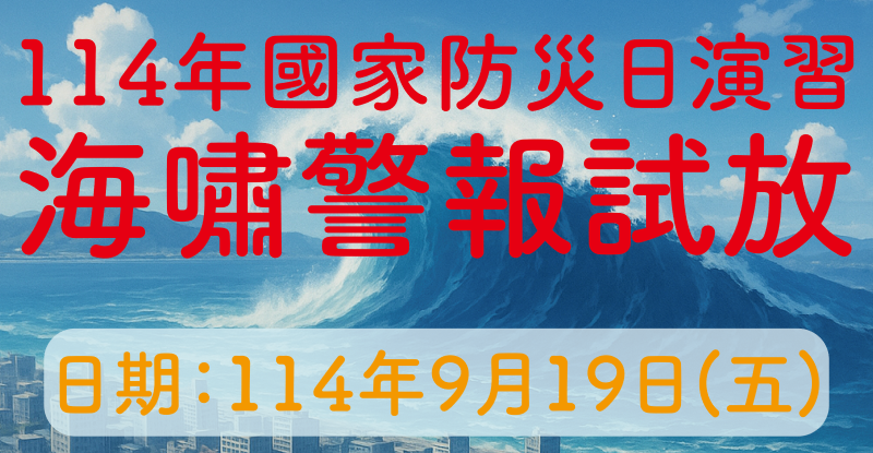 行政院預定海嘯情境設定模擬於114年(以下同)9月19日(星期五)9時21分,臺灣東部海域(琉球海溝)發生芮氏規模 8.5 地震(東經 123.40 度、北緯 23.56 度),震源深度 10 公里之地震,主要影響臺灣東部及北部地區,並可能引發海嘯,威脅臺灣西南部、東南部、東部、東北部及北部等沿海地區。