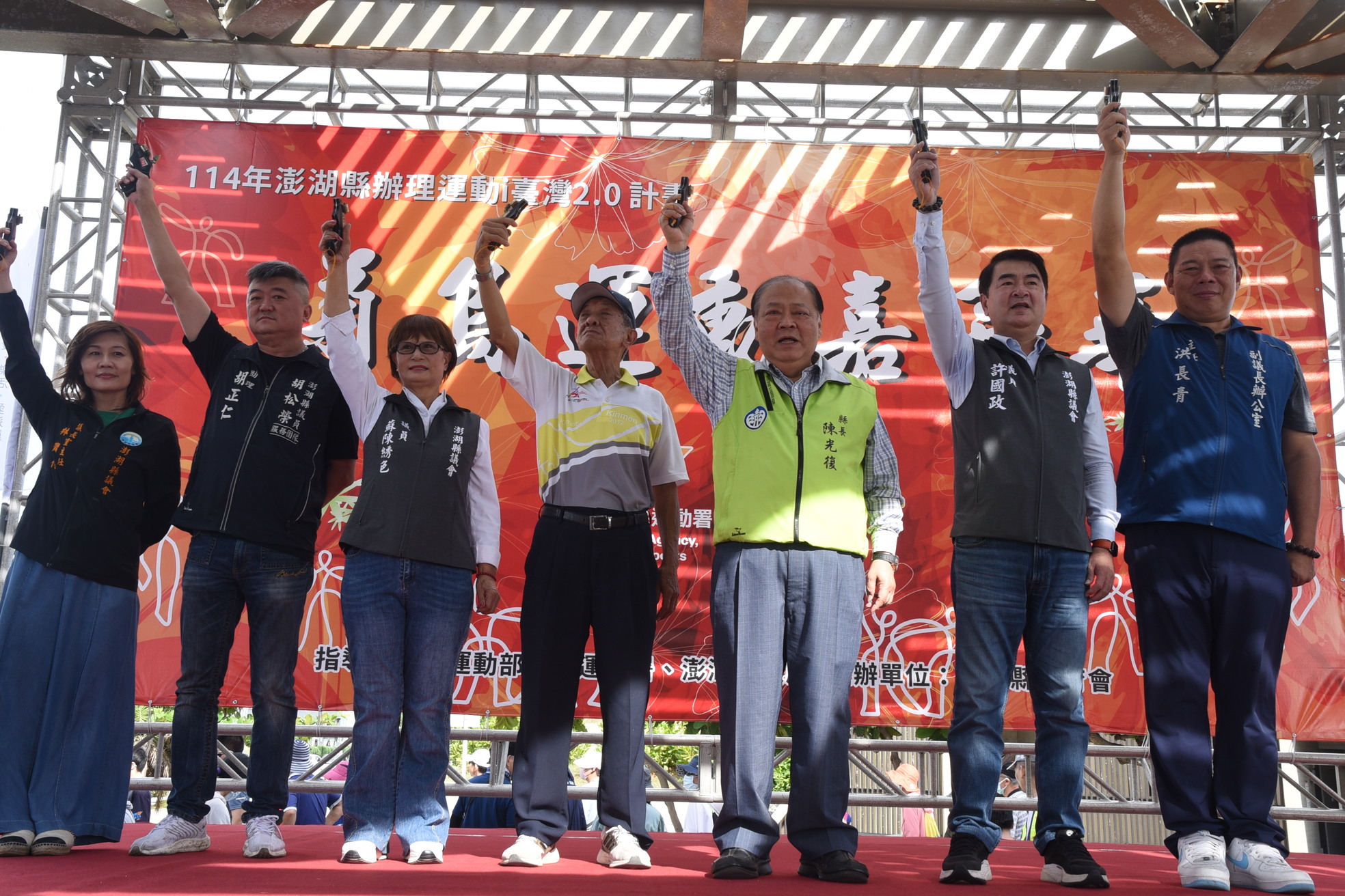 澎湖縣體育會20日上午在國際廣場舉辦「運動i臺灣2.0─菊島運動嘉年華」,1,300餘人以健走、運動體驗、親子律動及舞蹈表演,共同迎接澎湖縣國民體育月。縣長陳光復盼運動走入日常,更多人走出戶外、擁抱陽光,與家人朋友共享健康美好生活。