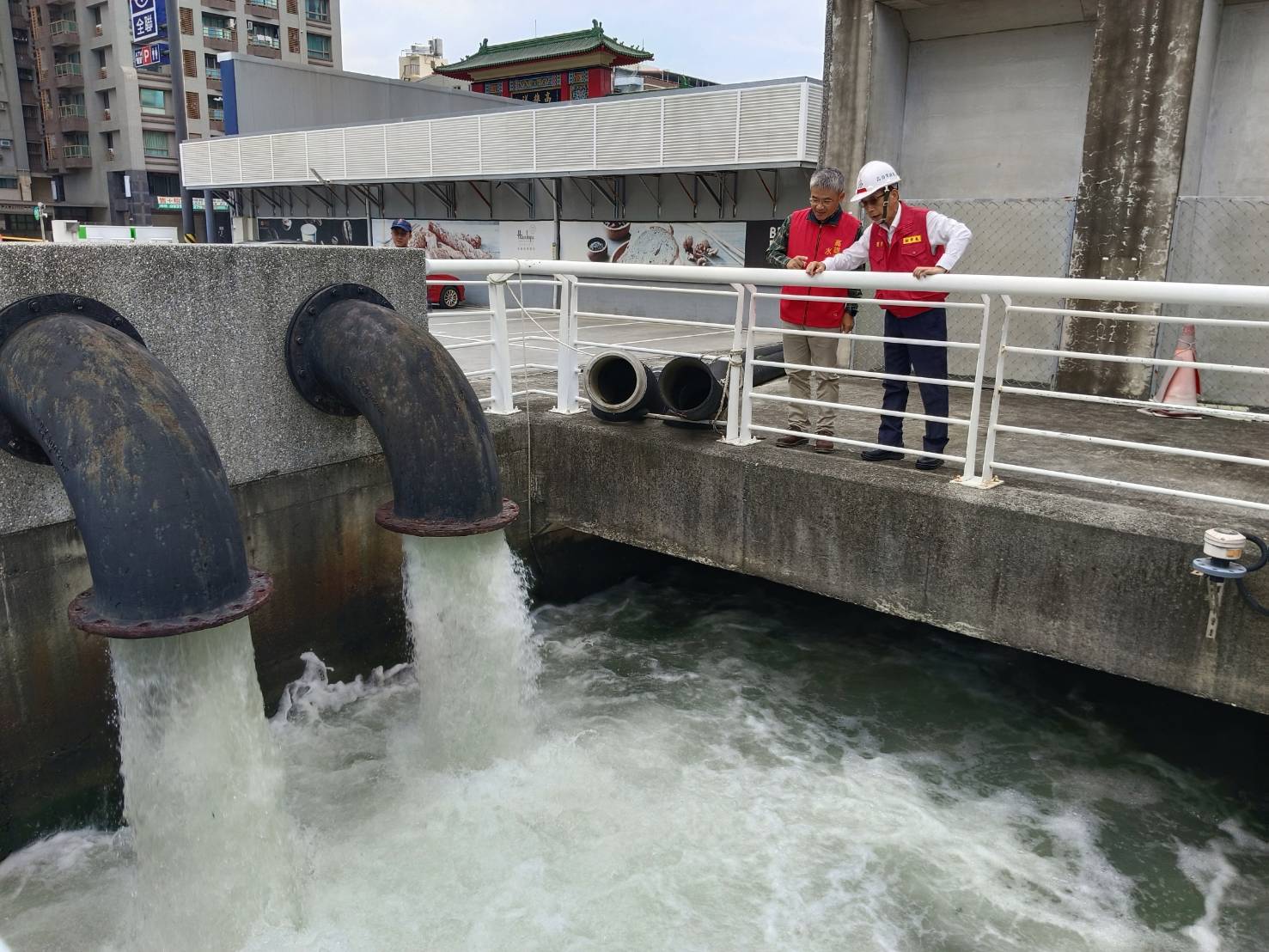 視察南北大溝抽水站。(記者翻攝)
