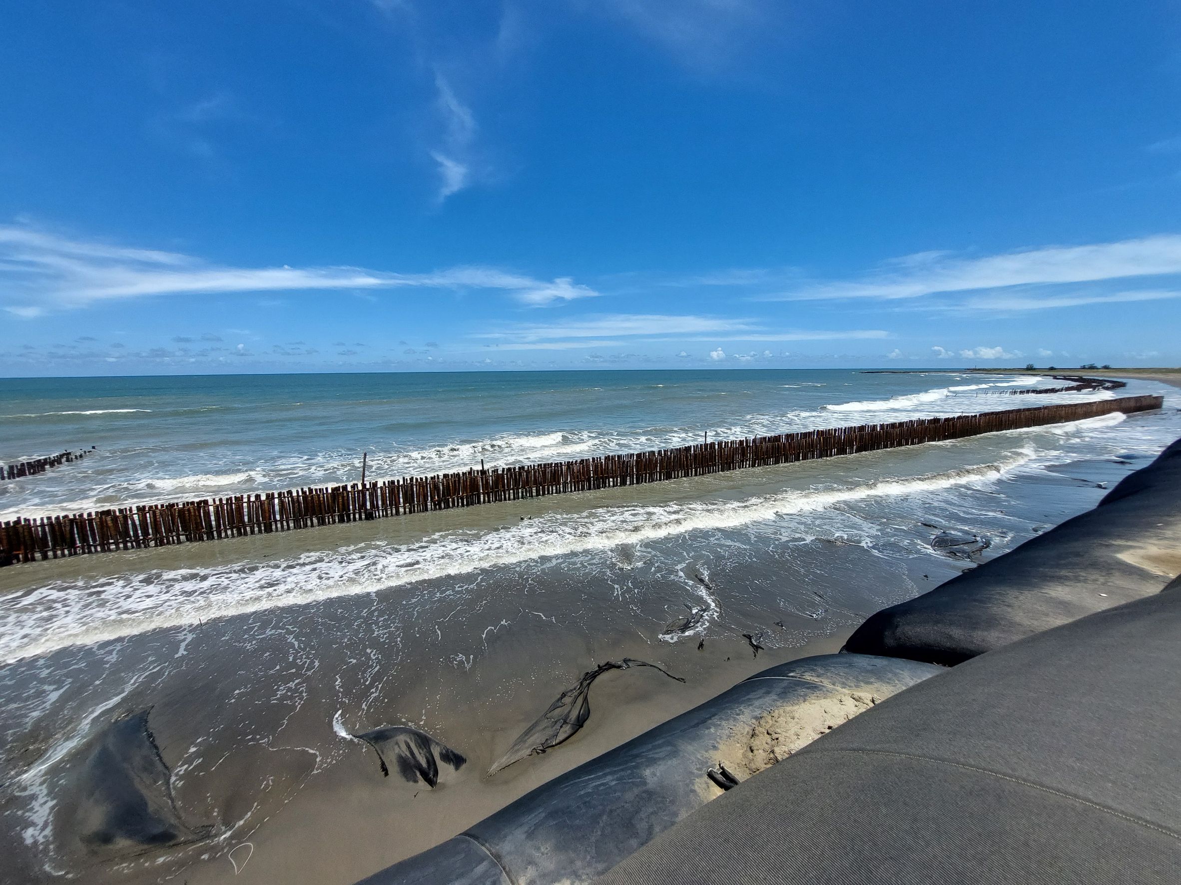 今(114)年7月初丹娜絲颱風掀起百年一遇的暴潮,在7月6日晚間將七股外海的沙洲衝破,導致海水灌入西寮社區。市府水利局事後一週內加高防洪牆、設置抽水機,並在7月15日,黃偉哲市長向行政院卓榮泰院長,當面提出短中長期的改善計畫約11.9億。後續行政院於9月10日已同意水利局提出的計畫,由經濟部水利署、內政部國家公園署及南市府,共同協力辦理七股潟湖沙洲復育工作。內容包括短期的減浪柵、堆砂籬、沙腸袋、抽沙養灘等工法,以及經過水工模型試驗後,建設中長期的離岸潛堤與離岸堤。