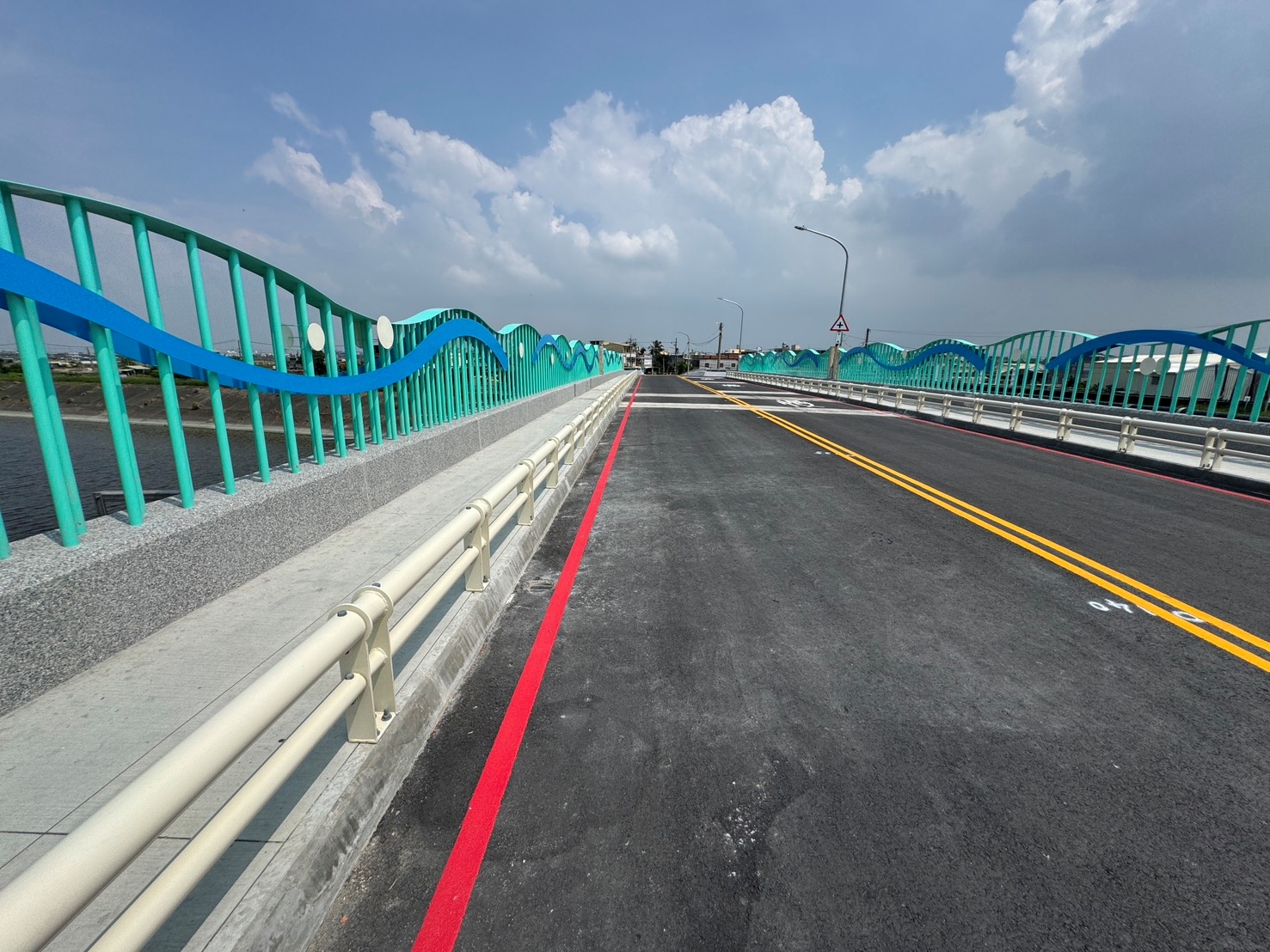 彌陀舊港橋通車後拓寬至12公尺,並增設雙側人行道,提升車輛與行人通行安全。(記者翻攝)