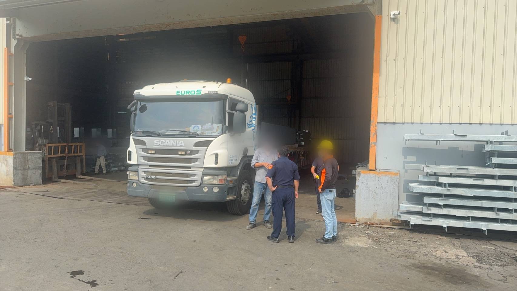 工廠內部事故現場大型鋼架,詳細事故原因,市府勞工局及檢調釐清中。(圖:記者李佳龍/翻攝)