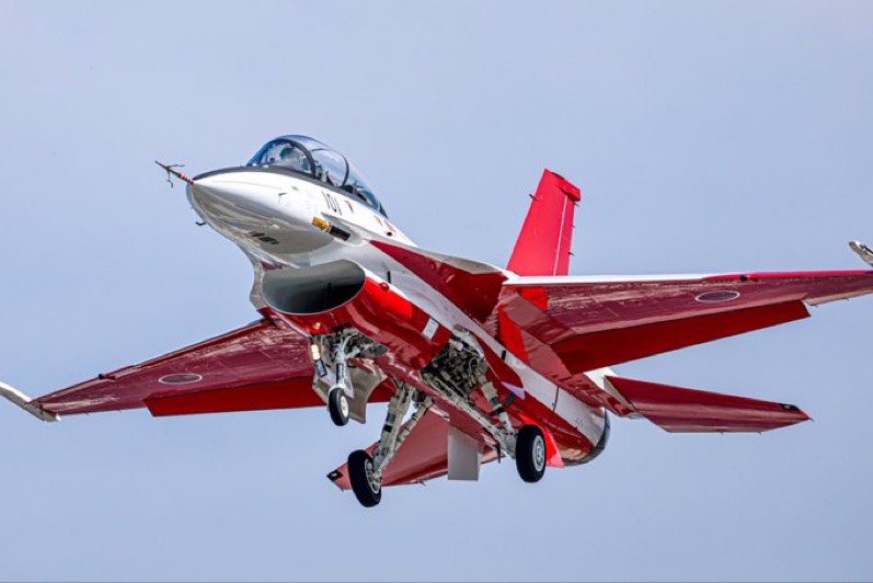 【記者王清正/綜合報導】為方便每年大批參觀民眾進入航空自衛隊岐阜基地,主辦單位特別規劃一條通過川崎重工岐阜工廠的入場動線,川崎重工本部大樓為去年落成在玄關處展示剛除役的藍色衝擊T- 4表演機,這也是第1次以地面展示狀態的T-4表演機,展現川崎重工與日本軍用機事業的連接,這架藍色衝擊的T-4機號為46-5726號,為1994年4月出廠的首架表演專用機於2017年二月7日除役以後由岐阜基地出借給川崎重工展示。