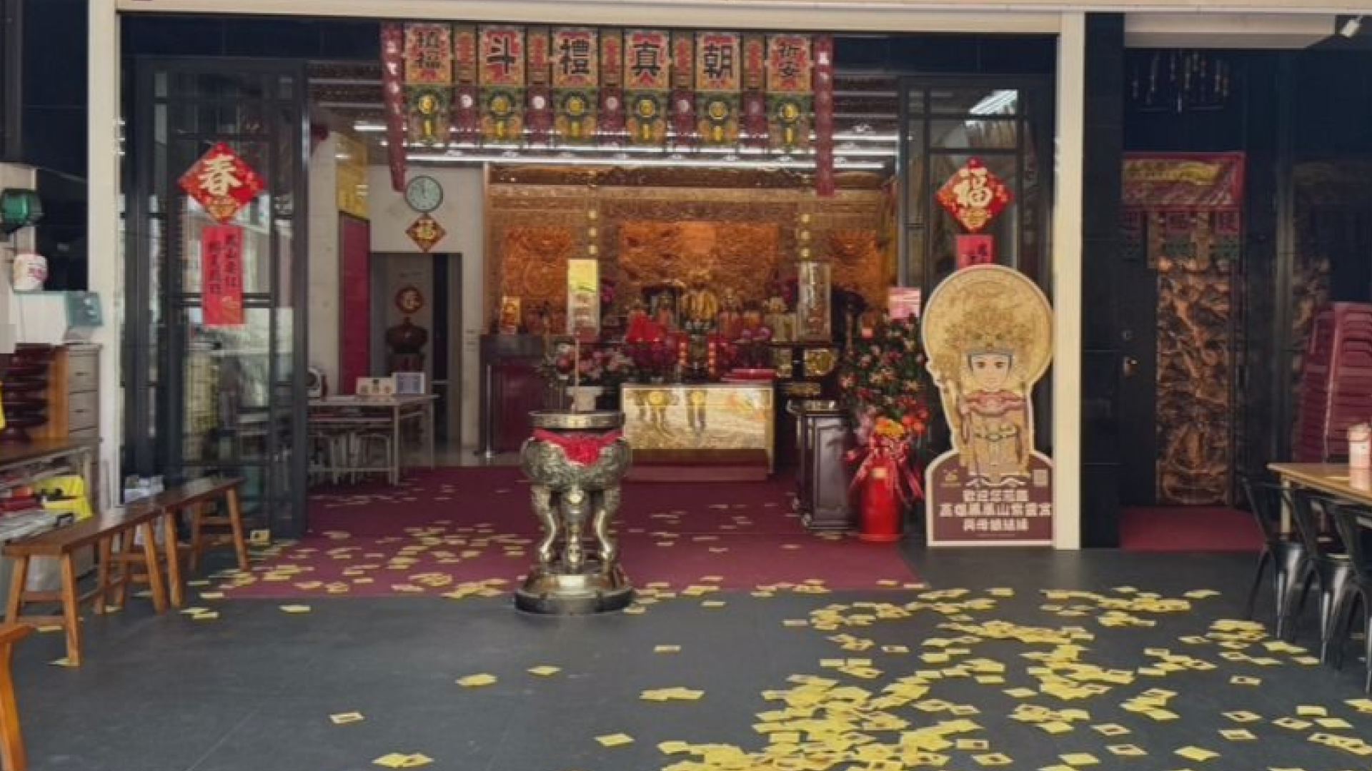 10月8日上午,一群黑衣人到紫靈宮撒冥紙高喊要孫姓宮主出面。(圖:民眾提供)