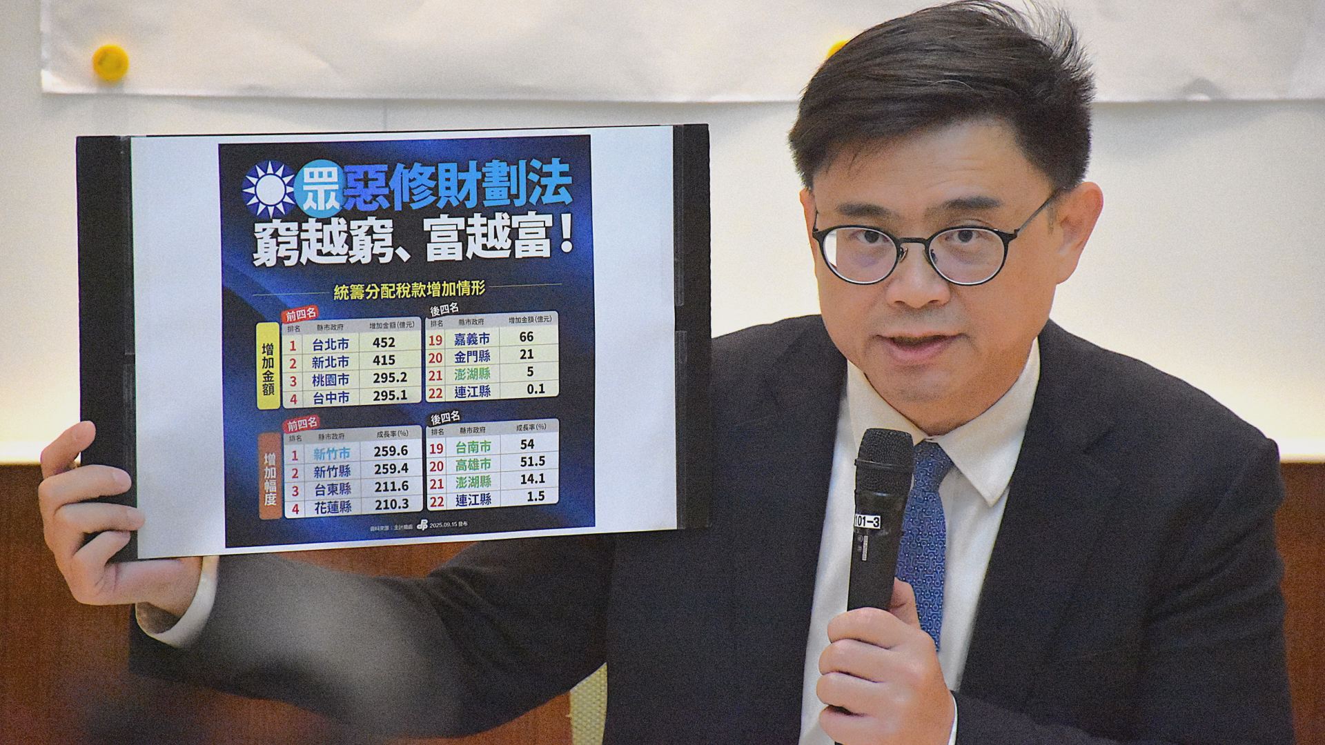 【記者李佳龍/高雄報導】針對立法院國民黨主導通過的《財政收支劃分法》修正案,民進黨立委賴瑞隆今(13)日召開記者會強烈抨擊,指控該版本修法是「重北輕南」的惡法,讓南部成為重災區。賴瑞隆點名身兼國民黨智庫執行長的立委柯志恩,當初執意推動「獨厚台北3%」的方案,導致新法下臺北市增加452億元,卻讓高雄市實質減少174億元,成為六都中成長率墊底、損失最大的城市,痛批國民黨是造成區域不公的罪人。