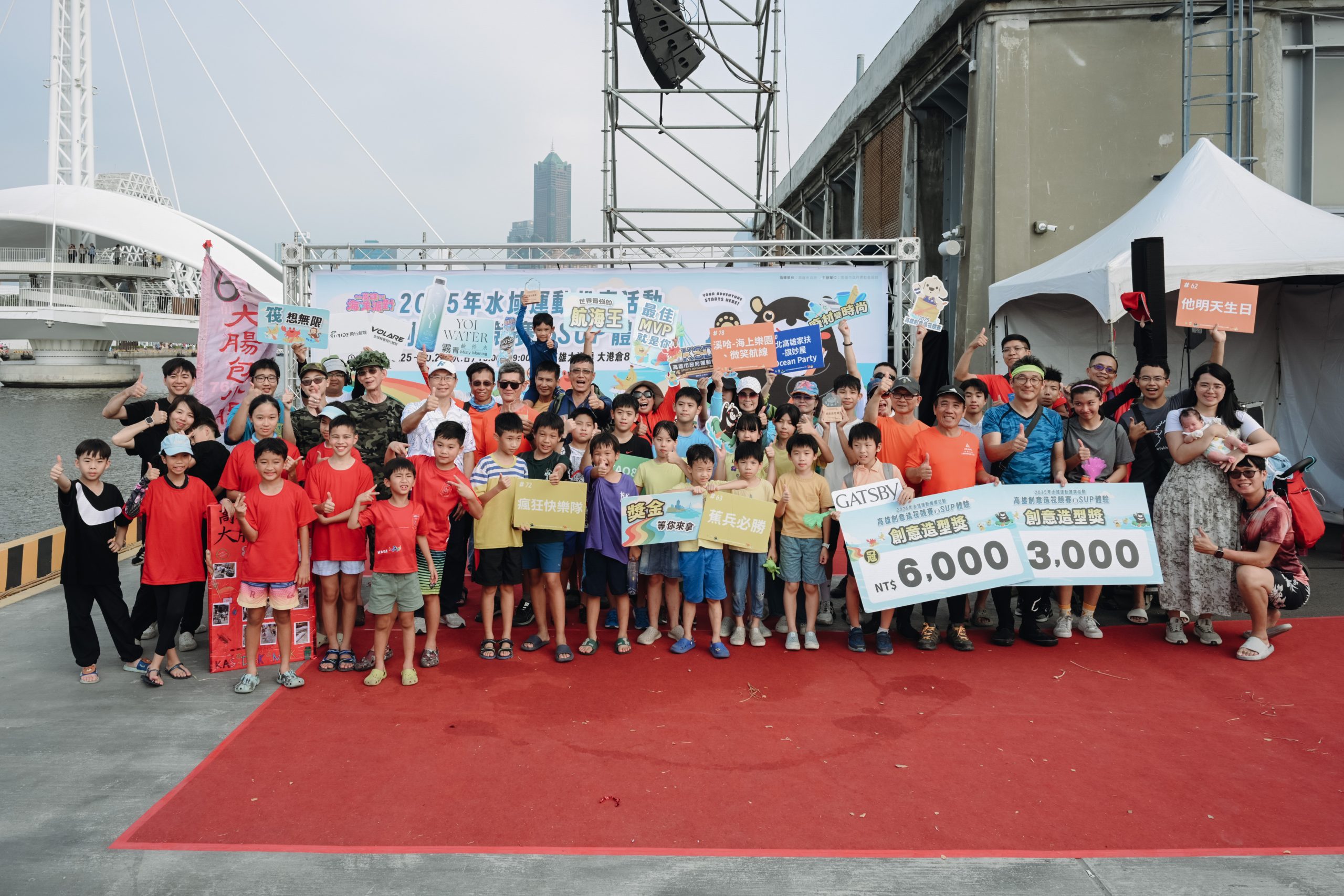 今年參賽隊伍報名踴躍、創意十足、風格多元,有遠從其它城市特地來挑戰的,也有好幾支團隊連續三年參與。來自桃園市的「木頭人」以精湛木工技術打造兼具穩定與美感的造筏,奪得創意造型獎冠軍,成為全場焦點;家庭組「同心協力」則以回收材料製作船筏、親子共同參賽,勇奪環保永續獎冠軍,展現寓教於樂的環保精神;而以幽默命名的「沈船股份有限公司」在現場笑聲與掌聲中,拿下最佳人氣獎冠軍,雖名為「沈船」,卻穩健划行、成績亮眼,成為觀眾票選的最愛。