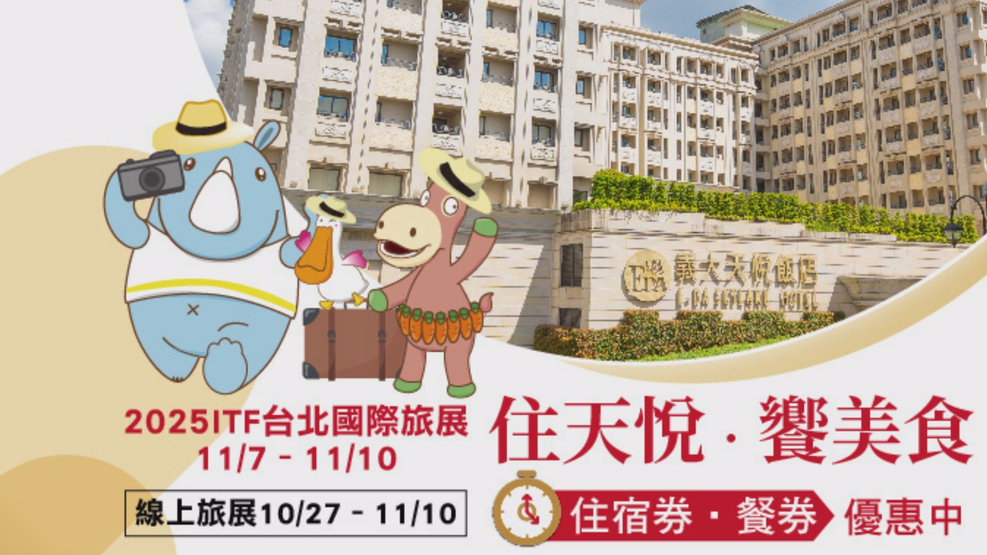 【記者李佳龍/高雄報導】一年一度的「2025台北國際旅展」將於11月7日至10日在南港展覽館盛大登場,南台灣渡假勝地「義大世界」搶先於10月27日至11月10日同步開放線上旅展,讓民眾不用北上就能搶優惠。今年義大世界旗下兩大飯店的五星級「義大皇家酒店」與親子取向的「義大天悅飯店」,聯手推出限時住宿與餐飲折扣,從線上早鳥到現場限定活動通通有,旅展現場還能搭配樂園門票加購價,一次享受吃、住、玩全包式假期。