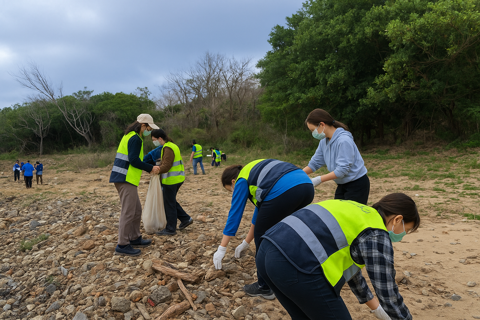 活動當日,港務公司與尖山發電廠及多家工程廠商員工共同參與,攜手清理海漂廢棄物,包括寶特瓶、保麗龍、塑膠籃、玻璃瓶及繩索等。透過眾人合力,讓金龍頭灣區沙灘恢復原有潔淨樣貌,重新展現出碧海藍天、白沙綿延的自然風光。此次淨灘不僅象徵企業積極落實環保行動,也喚起更多民眾對海洋環境保護的重視。