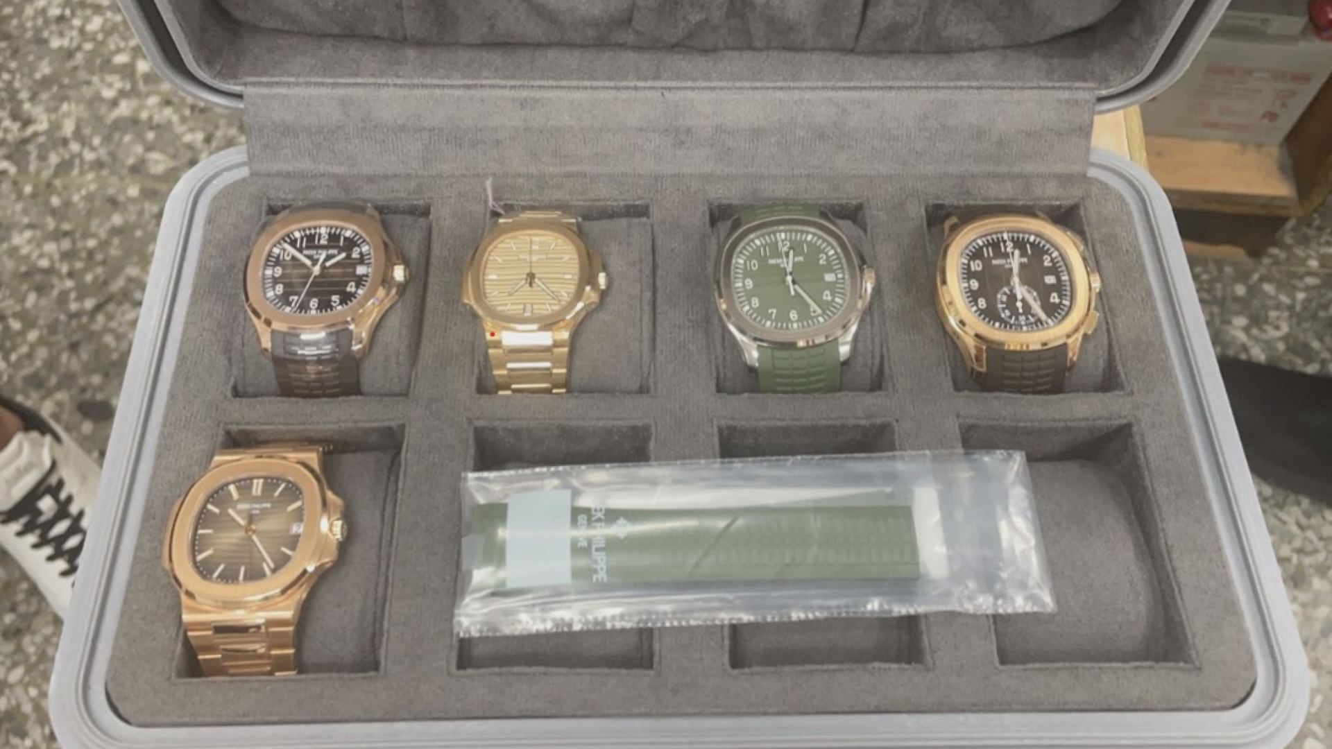 險遭犯嫌搶劫得手的高端名錶包括有百達翡麗「海底探險家」與「金鷹」系列等,市值逾千萬元。(圖:記者李佳龍/翻攝)