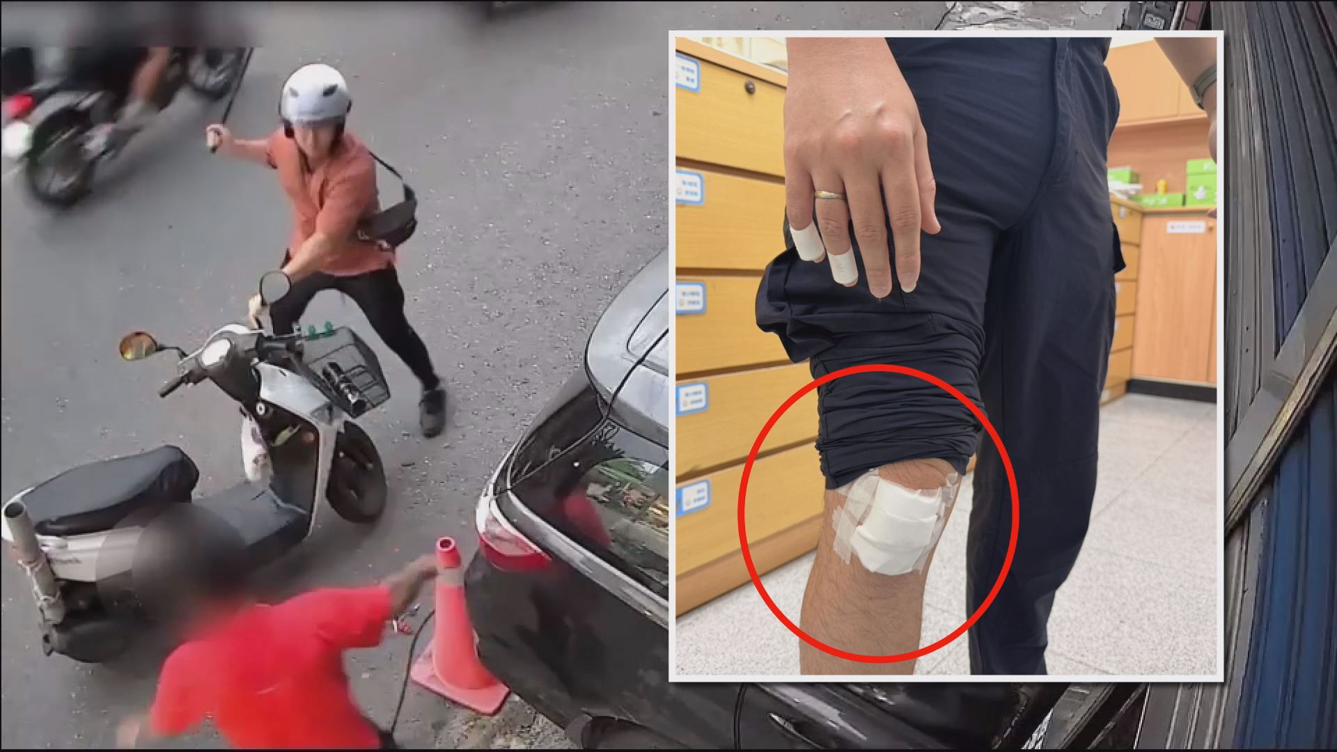 黃嫌被員警循線找到時,不僅拒絕盤查,還拿出螺絲起子攻擊員警(見小圖),造成員警手腳多處擦挫傷。(圖:記者李佳龍/翻攝)