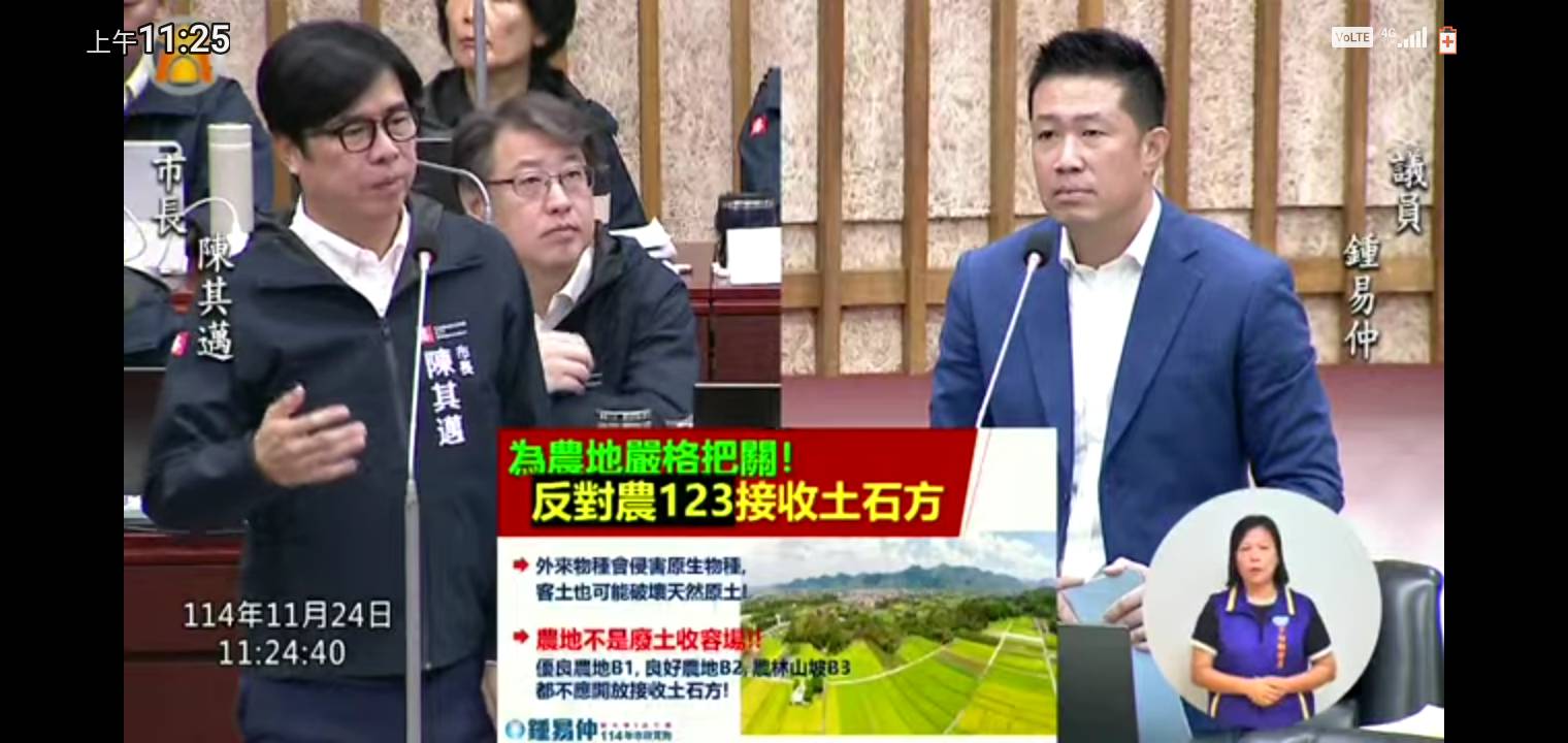 【記者蘇武智/高雄報導】高市議員鍾易仲為農地嚴格把關。他在今(24)日總質詢處理後營建剩餘土石方回填農地議題,反對農一、農二及農三等優良農地接收土石方。