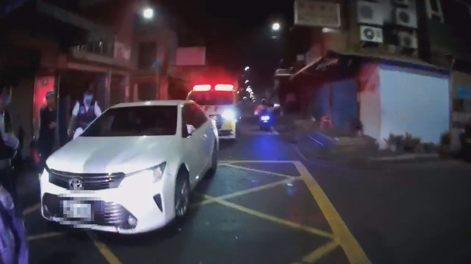 高雄鳳山區深夜,一輛自小客車怠速停在南光街路中央,車內溫姓女駕駛與林姓男子均處於昏睡狀態,情況相當危險,救護車更是在後方待命中。 (圖:記者李佳龍/翻攝)