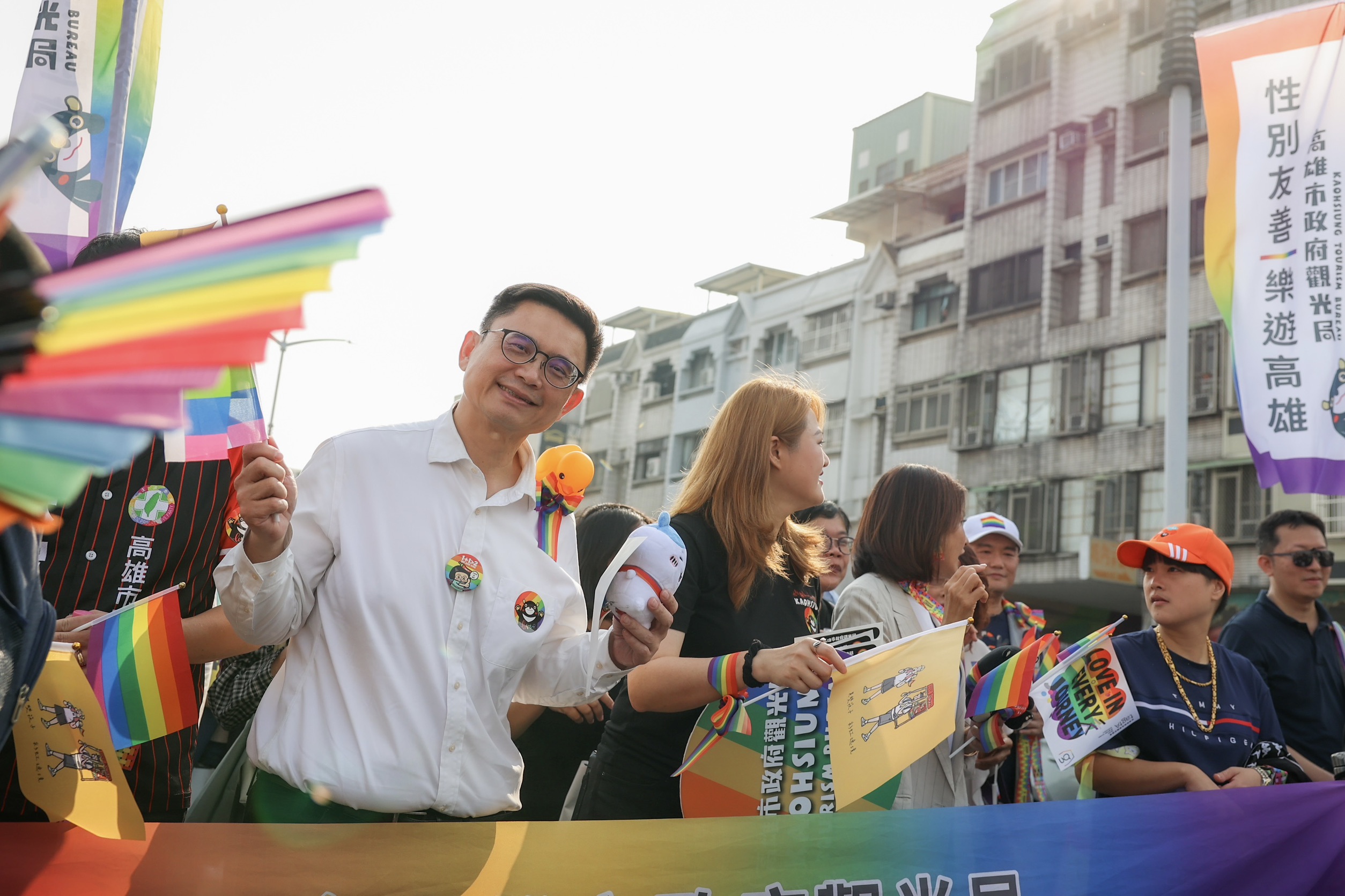 賴瑞隆補充,2010年首次遊行開始,時任陳菊市長便出席支持,再到陳菊、陳其邁兩任市府團隊推動諸多性別友善措施,政府有責任給多元族群更完整的尊重,讓每個人都有權利為自己感到驕傲,充滿笑容做自己。