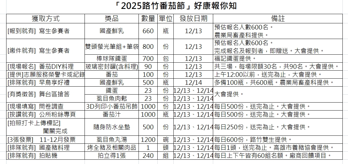 冬季的路竹,不只有新鮮多汁的小番茄,更有農民朋友辛勤耕作的豐收成果,路竹農產品經過嚴格把關,讓民眾能在活動現場一次購足最新鮮、最美味、最天然、最安全且最優質的好味道。大家能在2025路竹番茄節活動度過幸福滿滿的快樂時光,帶著最美好的回憶滿載而歸。