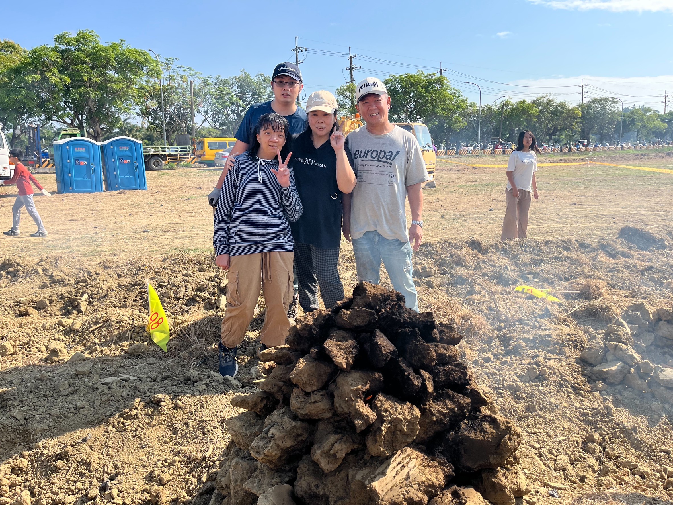 今日活動社會局邀請身心障礙兒童與其家人及社區式服務對象,身障兒童小菲因為行動不便,平常需依靠輪椅代步,平常外出活動的機會不多,這是她和爸爸媽媽一起參加人生第一次的焢窯體驗,焢窯時,小菲非常興奮,吵著要一起幫忙。另一位小恩,平時在社區式單位上課,得知社會局提供焢窯活動時,立刻邀朋友一起報名,活動當天,他主動搬土塊堆窯、忙得滿頭大汗。小恩笑著說:「這是我第一次參加焢窯活動,雖然有點累,但能吃到熱騰騰的烤地瓜真的很開心!下次還要再揪朋友一起來!」。活動不僅讓不同背景的家庭走出戶外、親近土地,也在自然交流中展現身心障礙者與一般民眾共融的溫度,進一步強化社會的理解與接納,體現更包容、更友善的城市氛圍。