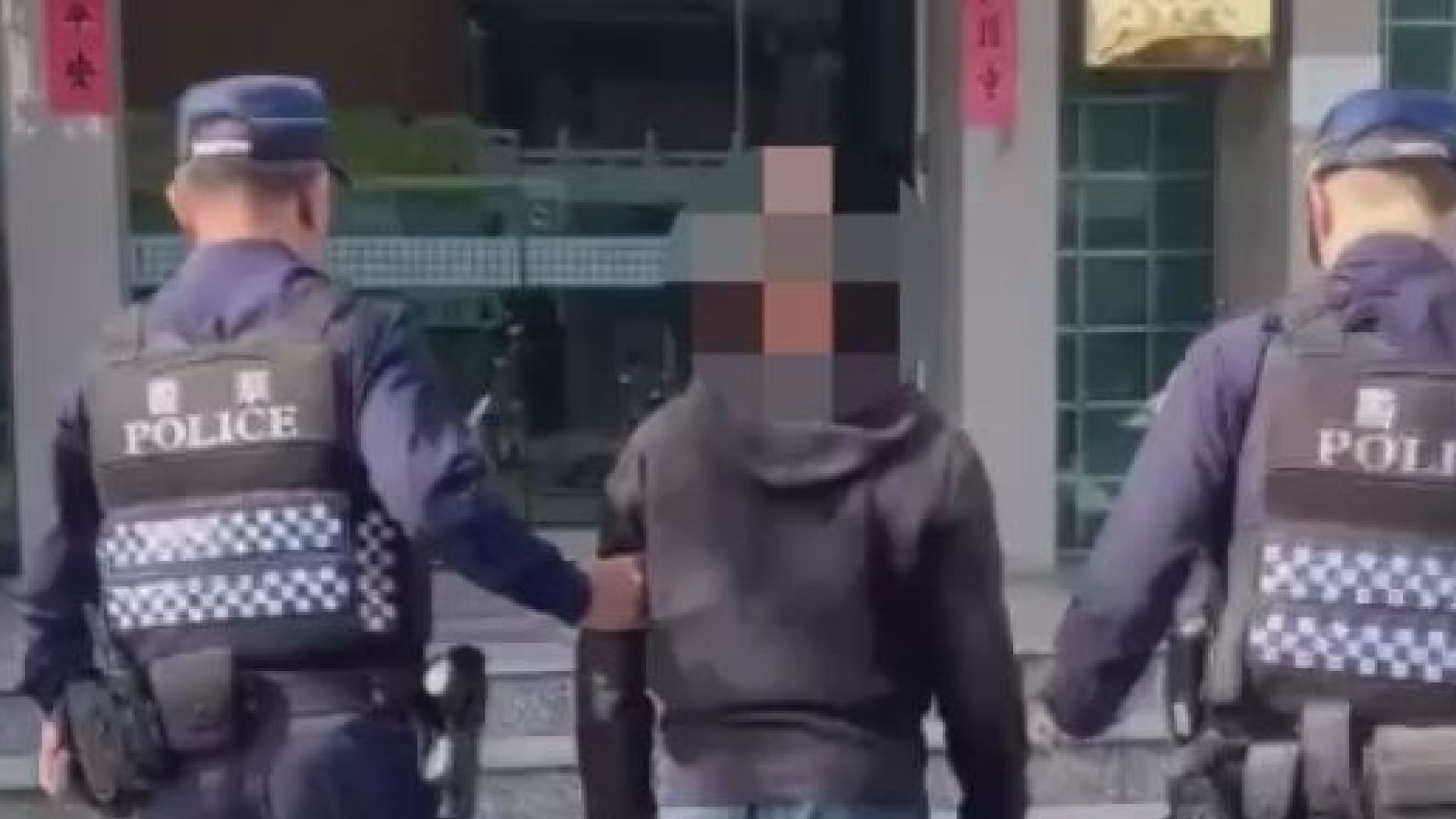 王男被警方帶返警所,後續將依社會秩序維護法相關條文移送裁處,結束短暫醉酒鬧事行為。 (圖:記者李佳龍/翻攝)