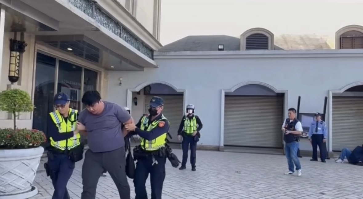 現場演練模擬突發持刀攻擊事件,巡邏員警接獲通報後立即啟動應變機制,配合特勤警力迅速制服歹徒,展現維護治安的強大決心。 (圖:記者李佳龍/翻攝)