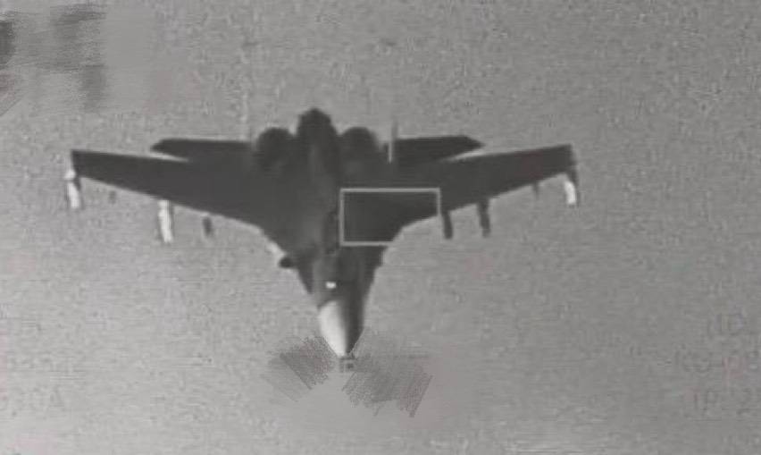 中共29日宣布對台軍演,國防部披露空軍F16V戰機透過狙擊手先進標定莢艙監控中共殲16戰機畫面(國防部提供)