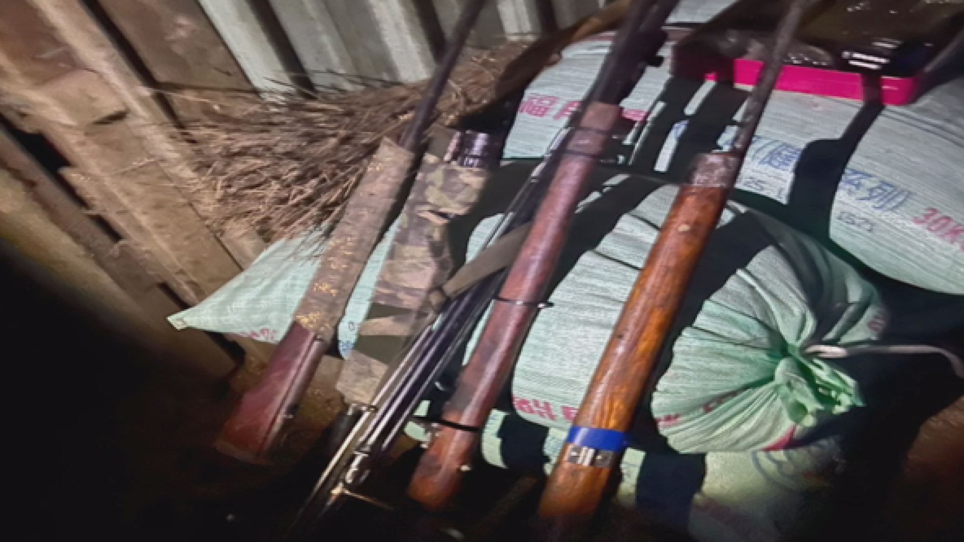 警方現場起獲5枝非制式長槍(圖),經初步鑑定其中3枝具備強大殺傷力,並查扣鋼珠與切割器具等大批改造工具。 (圖:記者李佳龍/翻攝)