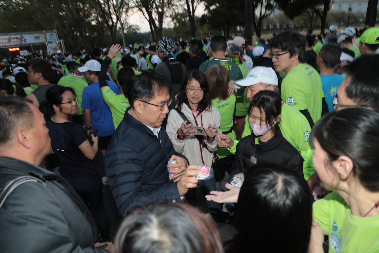 圖說-圖說:市長黃偉哲今(11)日受邀出席「2026臺灣國際馬拉松 in 臺南」活動,與參賽選手互動並為活動開跑加油。