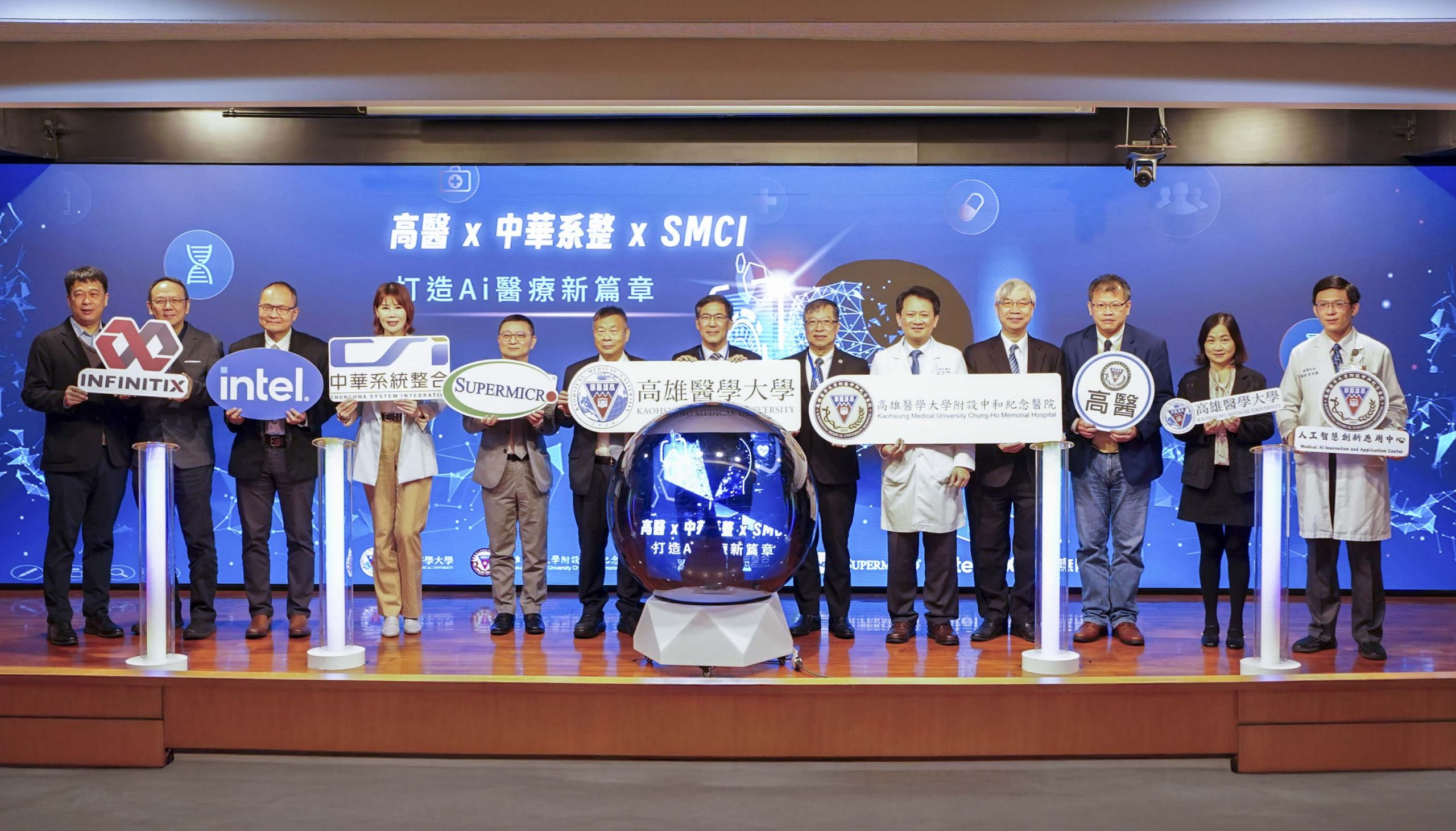 【記者林芸/高雄報導】高雄醫學大學附設中和紀念醫院(以下簡稱高醫)持續以前瞻科技引領智慧醫療發展,今(23)日舉辦「NVIDIA B300 GPU 高效能運算平台啟用儀式」宣告高醫再度領先全台醫療機構,率先導入新一代 NVIDIA B300 GPU 伺服器,全面強化 AI 運算能量,以因應全球醫療 AI 應用的爆發式成長,為台灣智慧醫療發展樹立全新里程碑。啟用儀式邀集財團法人私立高雄醫學大學董事會陳建志董事長、高雄醫學大學余明隆校長、高醫王照元院長、中華系統整合公司吳明德董事長與美超微電腦公司林振瑋總經理等代表共同點亮象徵智慧醫療新紀元正式啟航的啟動球,展現高醫攜手全球頂尖科技夥伴,推動 AI 醫療落地應用的堅定決心。