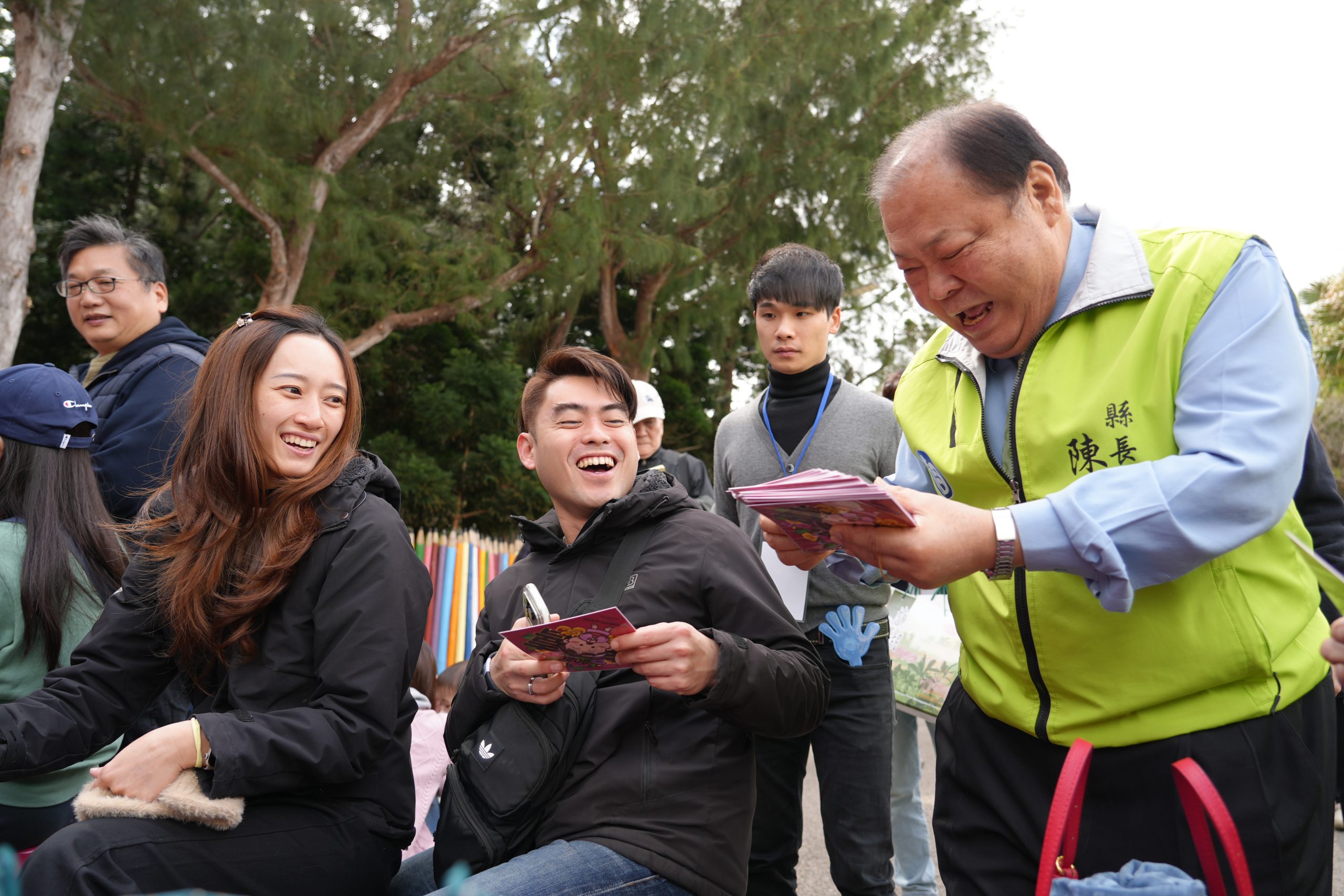 澎湖縣長陳光復特地到場,與大小朋友一起同樂,沿途逛市集、發送「馬上有錢」、「大吉大利」春聯,並坐上遊園小火車欣賞沿途花海美景。他也誠摯邀請鄉親及遊客於春節連假攜家帶眷前來賞花、遊玩,感受澎湖冬季獨有的溫馨節慶氛圍。