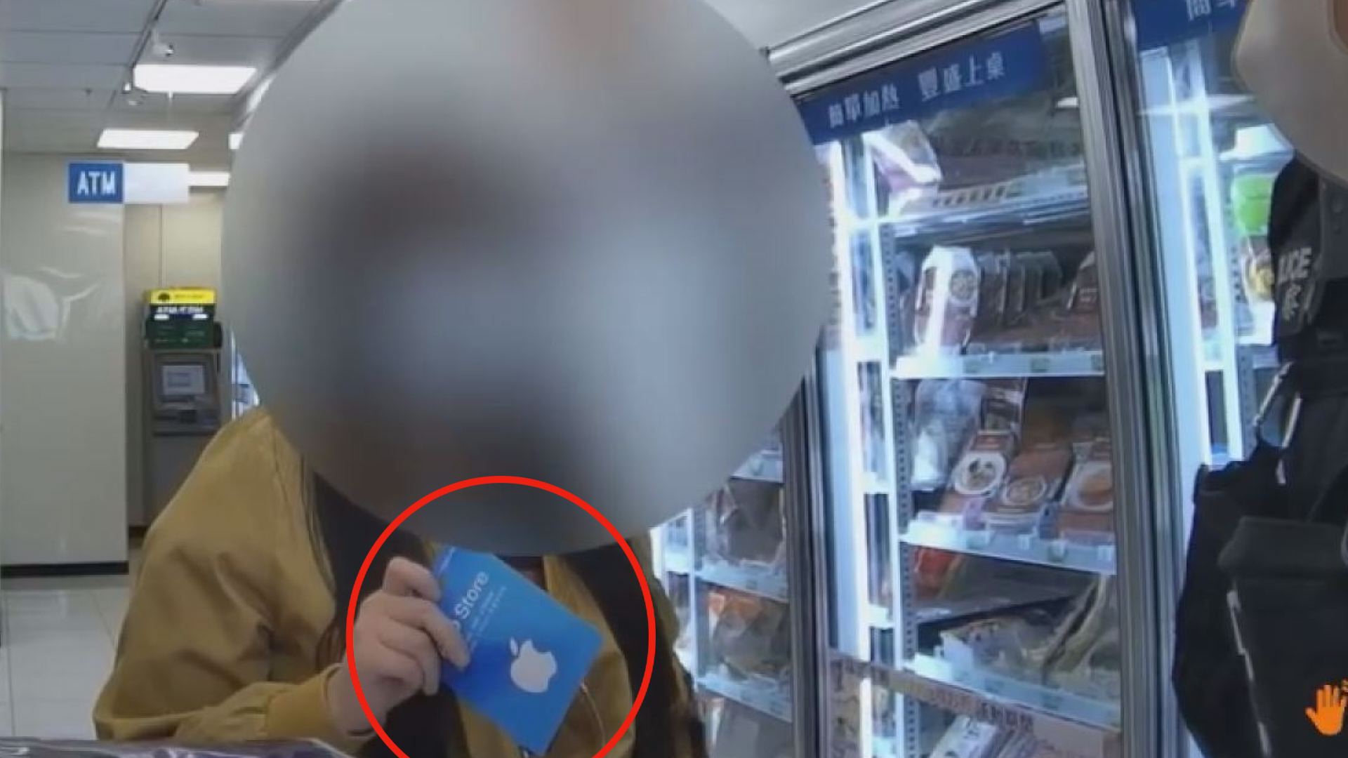 23 歲吳姓女子因一心想討回先前被詐騙的款項,誤信社群平台網友介紹「黑道大哥」幫忙討債的說詞,前往路竹區超商欲購買 6 萬元 Apple Store 禮品卡(紅圈處)。 (圖:記者李佳龍/翻攝)
