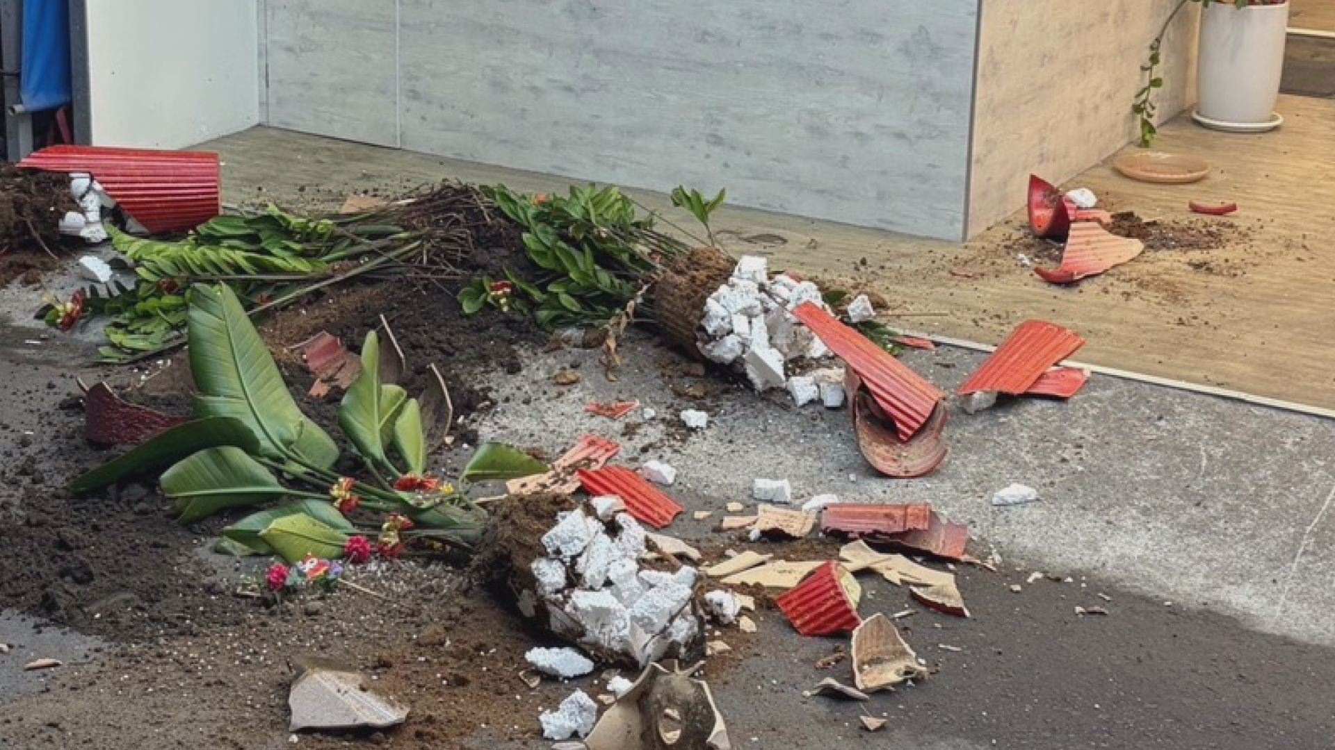 店家表示,張男在自家經營的商店砸毀盆栽桌椅物品,警方趕抵現場時張男已離去。(圖:記者李佳龍/翻攝)