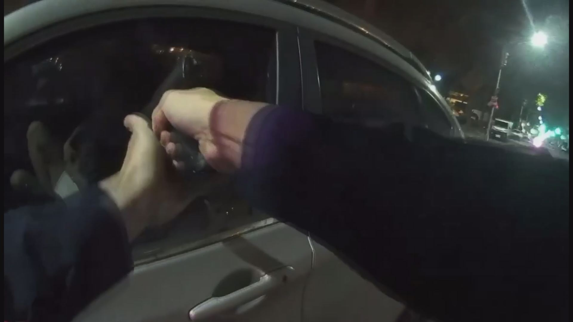 林姓女子駕車逃逸被攔停後,員警立即舉槍警戒,強勢要求車內人員下車配合受檢。(圖: