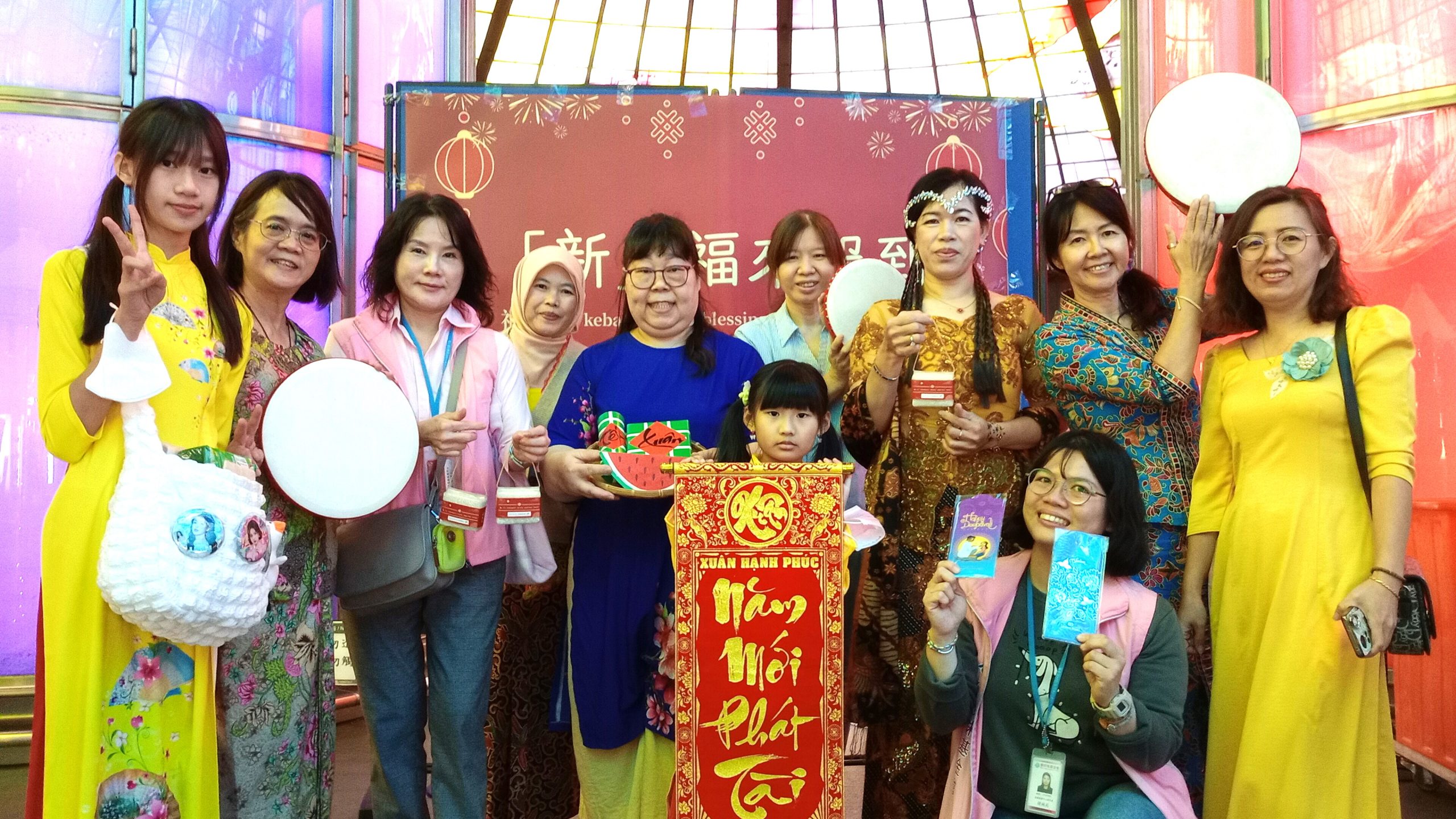 活動在7日舉辦有許多來自馬來西亞、泰國、菲律賓的新住民家庭攜手參與,也有不少印尼移工朋友共襄盛舉,甚至吸引路過的日本、歐美等國外旅客駐足體驗,在美麗島光之穹頂下,織繪出一幅充滿歡笑與祝福的國際新春風景。現場有越南、泰國、印尼、緬甸等多國語言「福」字春聯與紅包書寫體驗,以及馬來西亞手鼓、越南魚蝦骰子等傳統新春互動遊戲,社會局與賽珍珠基金會也共同致贈參與者「新福袋」,內含象徵豐收富足的「新福米」及新住民福利服務資訊,祝福新住民家庭新的一年幸福喜樂,讓無法返鄉在臺生活、工作的新住民朋友,也能感受如同「回家過年」般的溫暖,也促進跨文化交流,展現高雄友善移居城市的包容力與溫度。