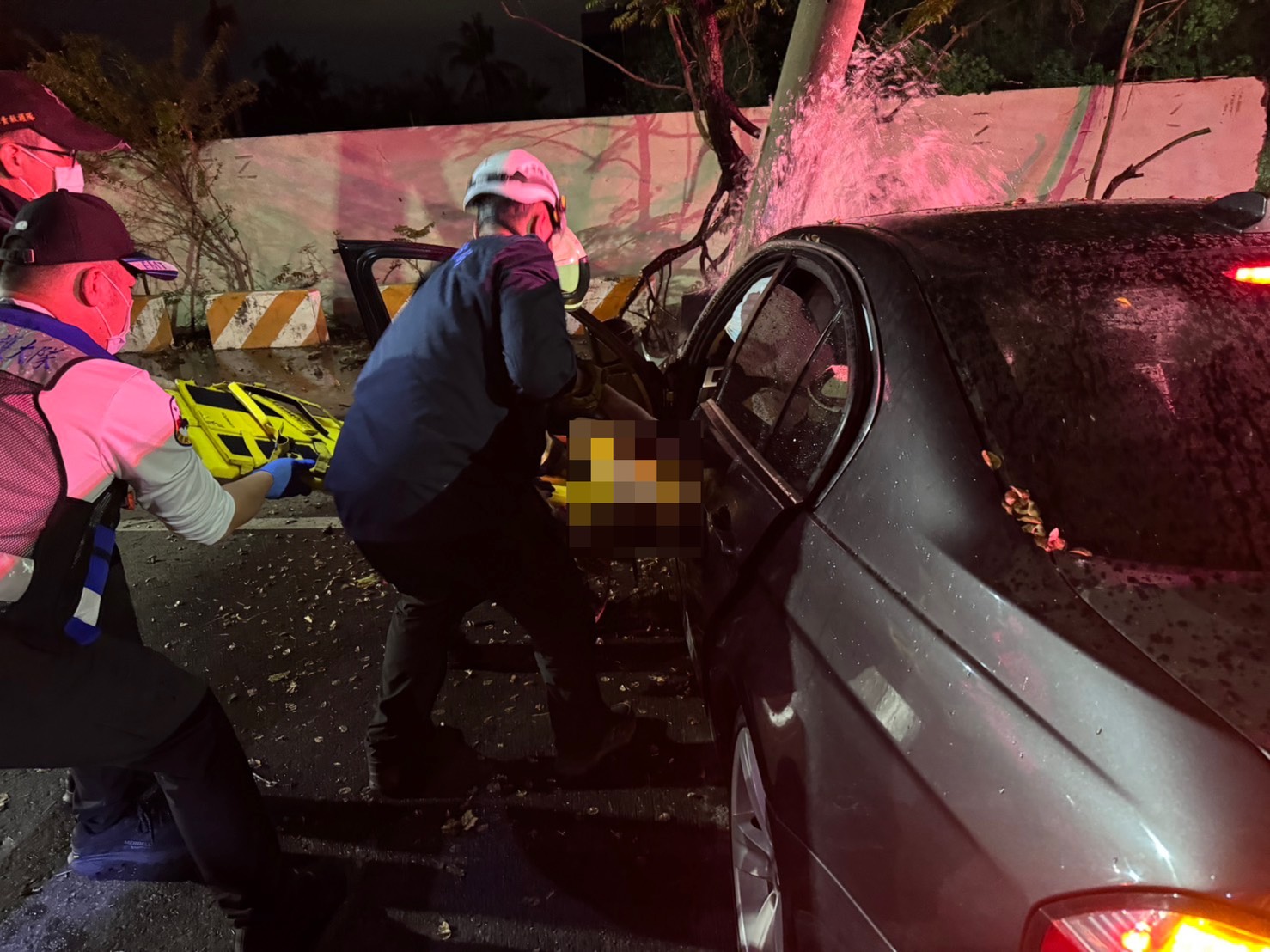 經查林姓駕駛目前就醫中尚無法詢問自撞原因及實施酒測,酒測值仍待抽血檢驗釐清;本案詳細肇事原因,將由交通大隊進一步分析研判。本分局提醒,深夜行車視線受限,請駕駛人務必減速慢行,以確保交通安全。